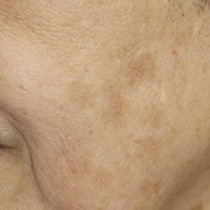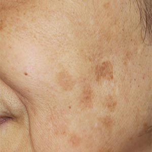 - ① 光老化によりメラニン色素が沈着してシミやそばかすがあり、肌が不均一な状態。